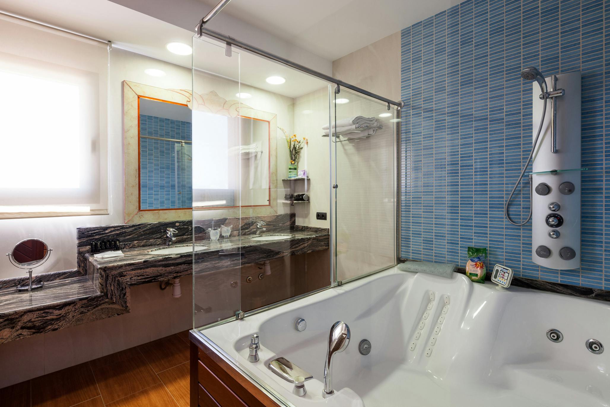 Bedrooms 1-5: King-size beds (can be split into singles), air conditioning, TV, and en-suite bathrooms (some with both shower and bathtub).