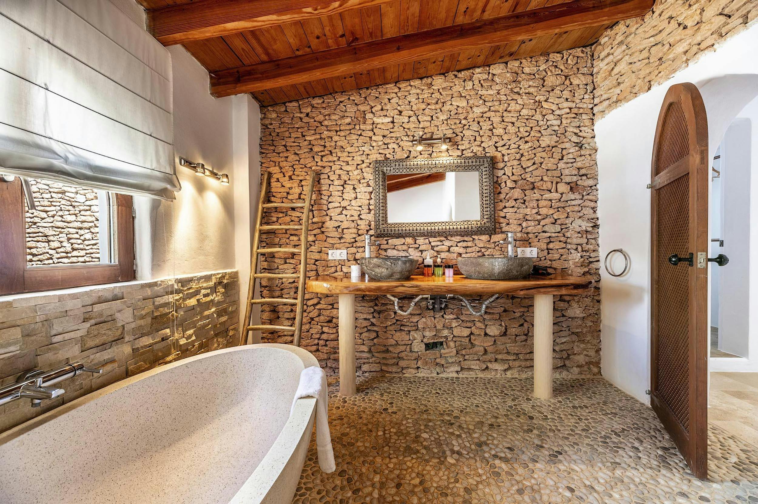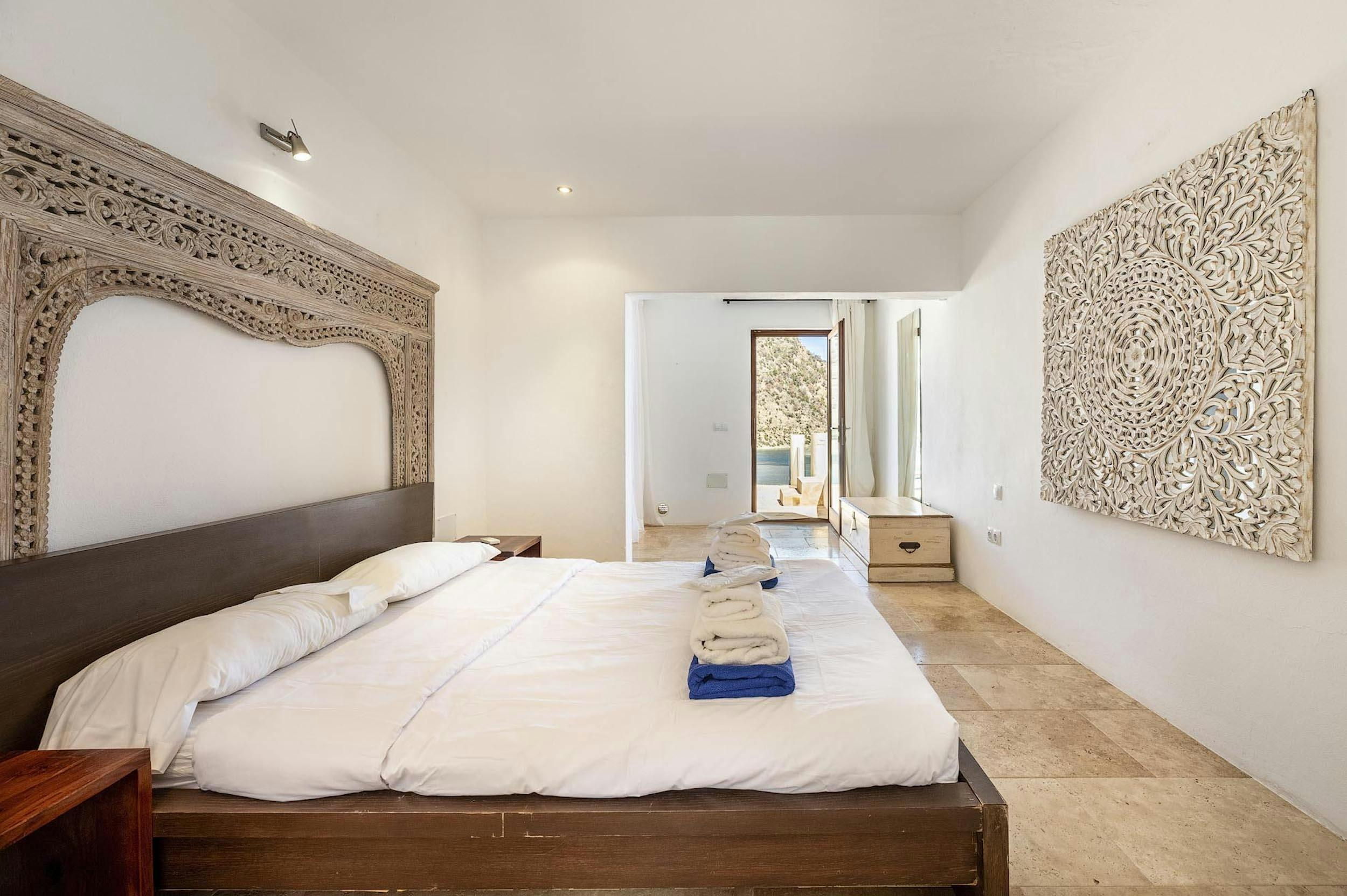 Elegant Interiors: A perfect blend of Ibicencan architecture and modern comforts with natural materials, exposed stone walls, and neutral tones.